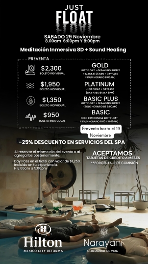 Recuerda llevar tu tapete de yoga, botella de agua simple y una cobija. En el caso de Terapia de Sonido en Agua trae tu traje de baño y una toalla adicional al material antes mencionado.